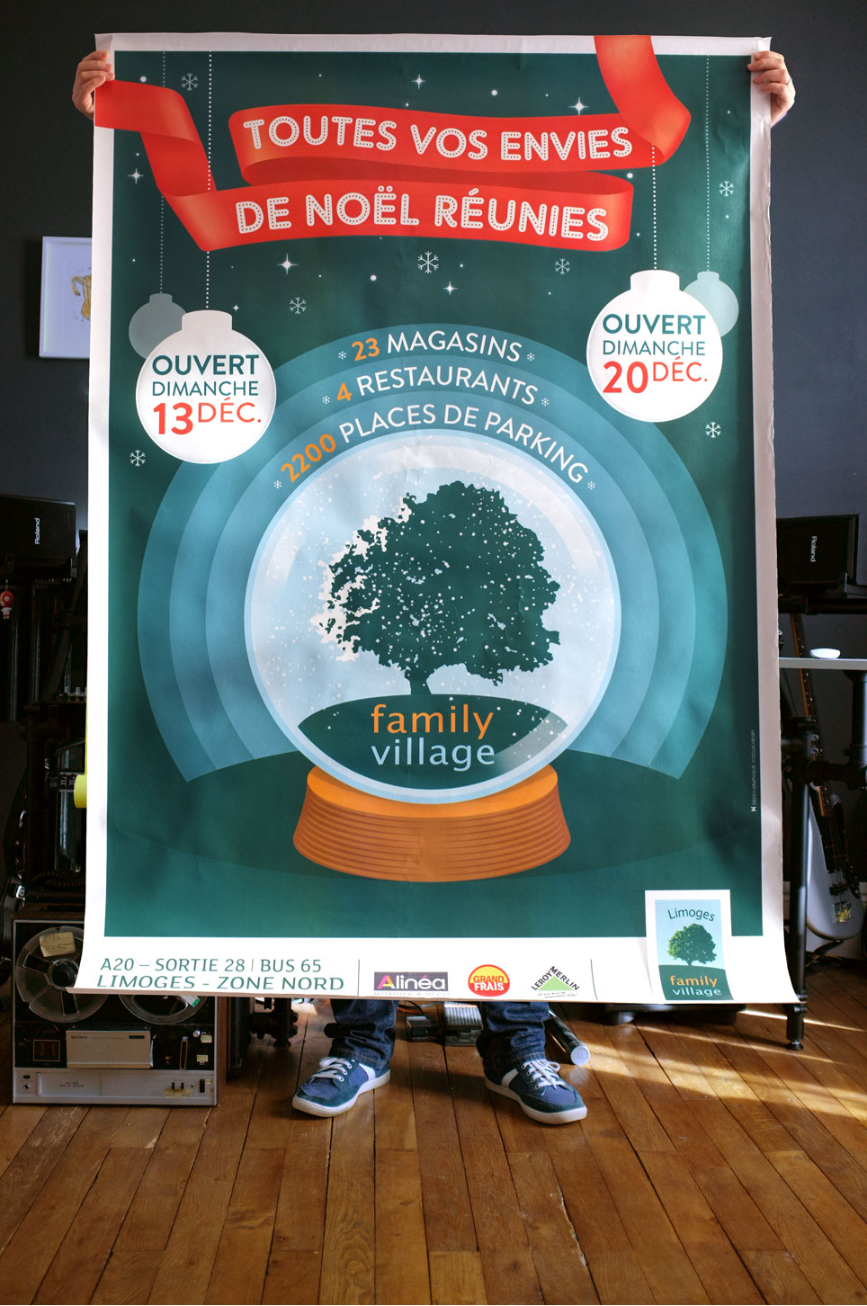 Création d'une af f iche abris-bus pour promouvoir la zone commerciale Limoges Nord pendant les fêtes de Noël.